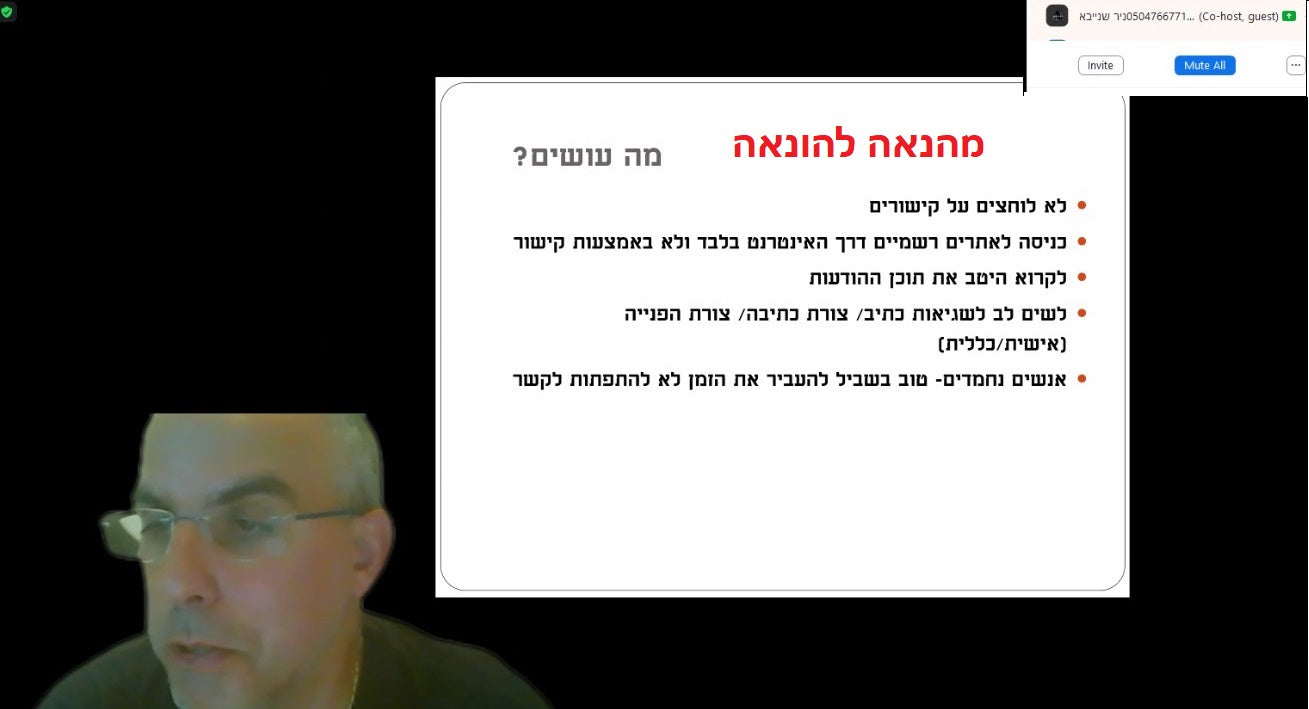- זיהוי מוקדם של הונאות נפוצות: תלמדו כיצד לזהות ניסיונות הונאה, כולל שיחות טלפון, דואר אלקטרוני, "מבצעים מיוחדים", ונוכלים שמגיעים עד דלת הבית.